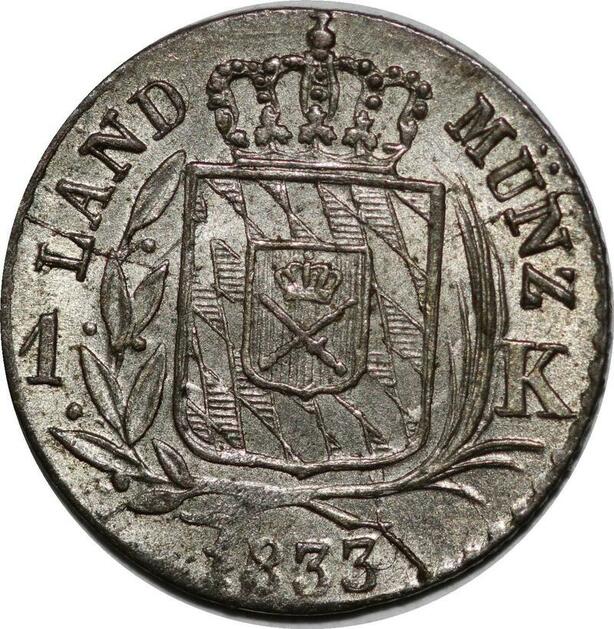 P5812 Germany Bayern Kreuzer Ludwig I 1833 Silver UNC -> M Offer