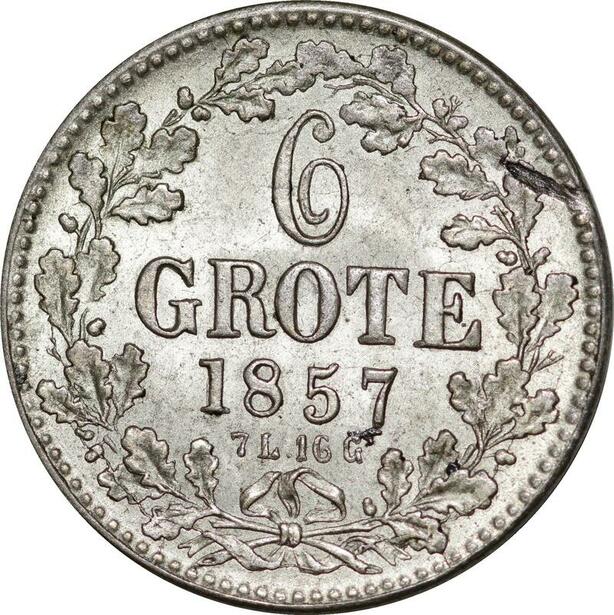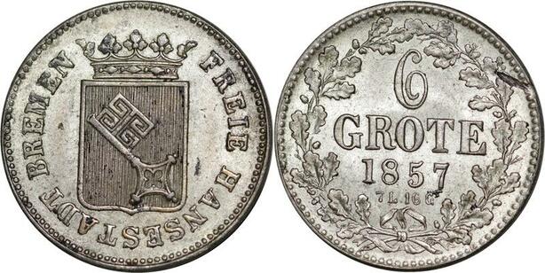 P5813 Germany Bremen 6 Grote 1/12 Thaler 1857 Silver UNC -> M Offer