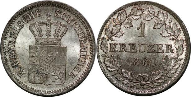 P5820 Germany Bayern Kreuzer Maximilian II 1860 Silver UNC -> M Offer