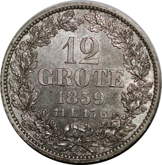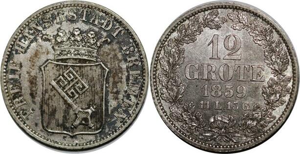P5829 Rare Germany Bremen 12 Grote 1859 11 L 15 G Silver UNC -> M Offer