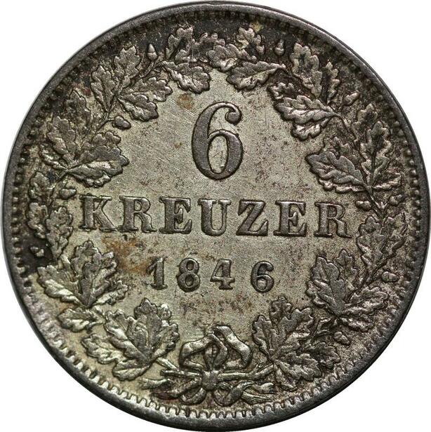 P5831 Germany Hesse Darmstadt 6 Kreuzer Ludwig I 1846 Silver -> M Offer