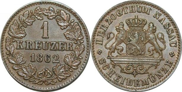 P5837 Germany Nassau Kreuzer Adolph I 1862 AU -> M Offer