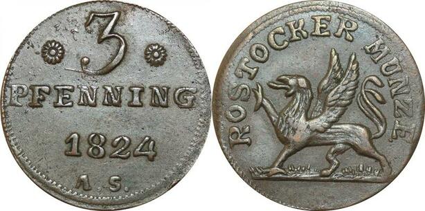 P5838 Germany Rostock 3 Pfennig Griffin 1824 AS -> M Offer