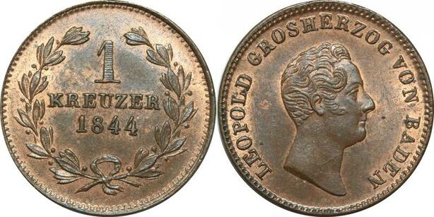 P5856 Germany Baden Kreuzer Leopold 1844 UNC RED -> M Offer