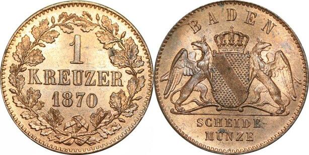 P5861 Rare Germany Baden Kreuzer Friedrich I 1870 BU RED -> M Offer