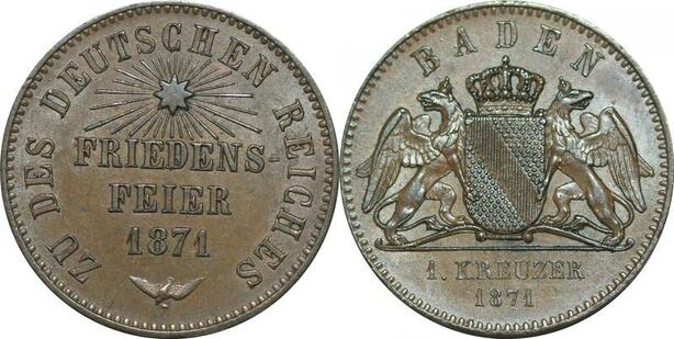 P5862 Germany Baden Kreuzer Friedrich I 1871 Friedenfeier AU -> M Offer