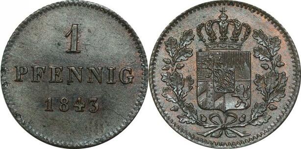 P5863 Germany Bavaria Pfennig Ludwig I 1843 AU+ -> M Offer