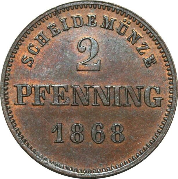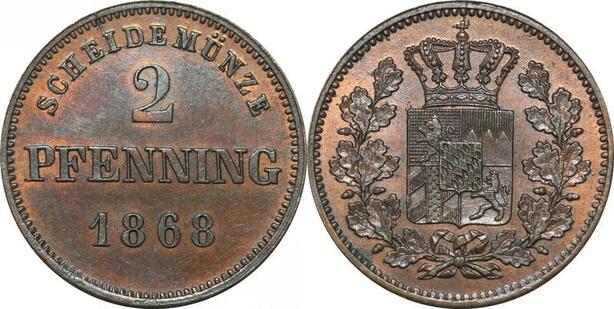 P5864 Germany 2 Pfennig Ludwig II 1868 UNC -> M Offer