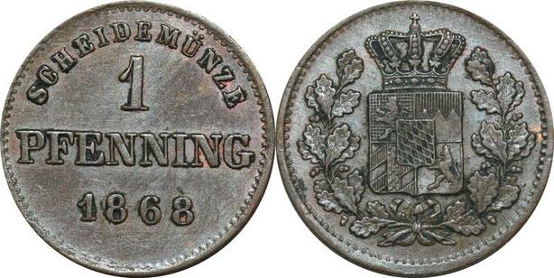 P5865 Germany Bavaria Pfenning Maximilian II 1868 -> M Offer