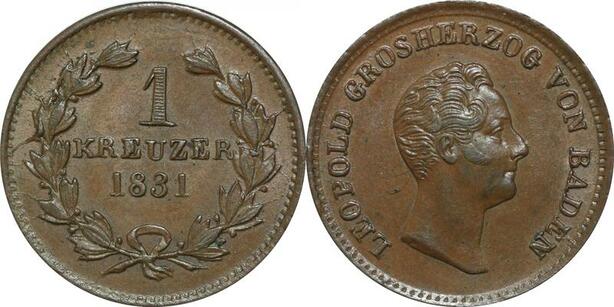 P5870 Germany Baden Kreuzer Leopold I 1831 AU -> M Offer