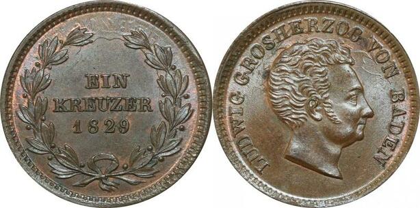 P5878 Rare Germany Baden Kreuzer Ludwig I 1829 UNC -> M Offer