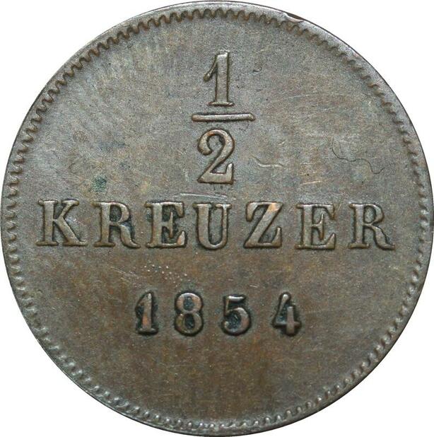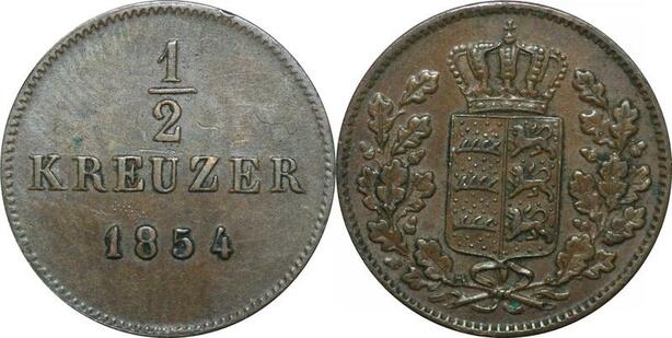P5880 Germany States Wurttemberg 1/2 Kreuzer Wilhelm I 1854 AU -> Make Offer