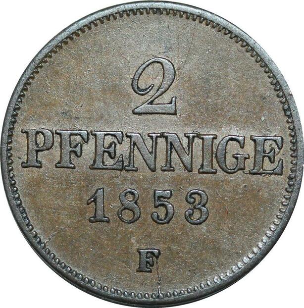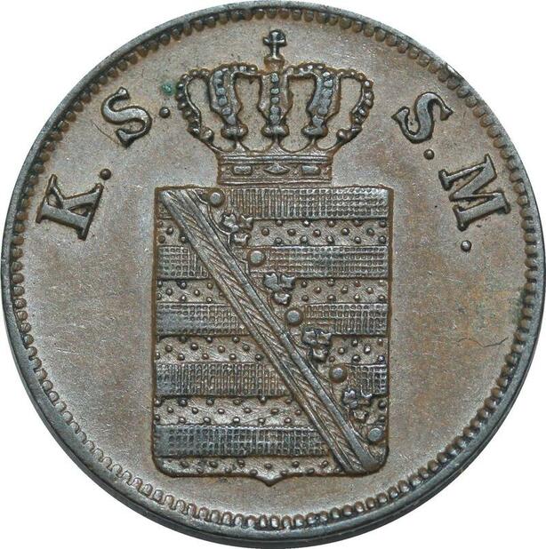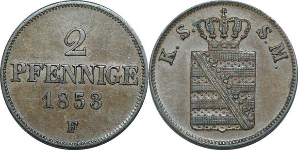 P5881 Germany Saxony Albertine 2 Pfennige Friedrich August II 1858 F AU