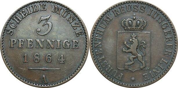 P5882 Germany Reuss Obergreiz 3 Pfennige Heinrich XXII 1864 A -> M Offer