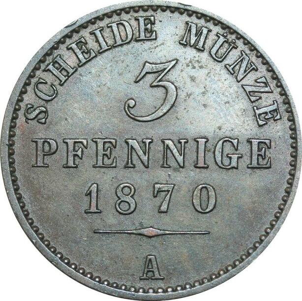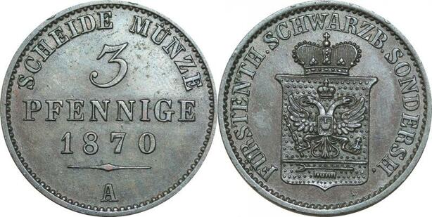 P5893 Germany Schwarzburg Sondershausen 3 Pfennige Günther F Karl II 1870 A