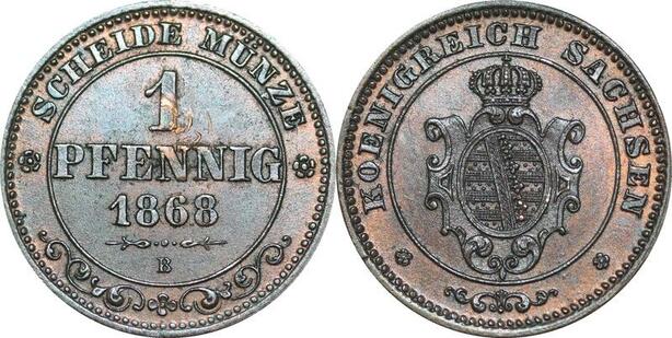 P5901 Germany Saxony Albertine Pfennig Johann I 1868 B UNC -> M Offer