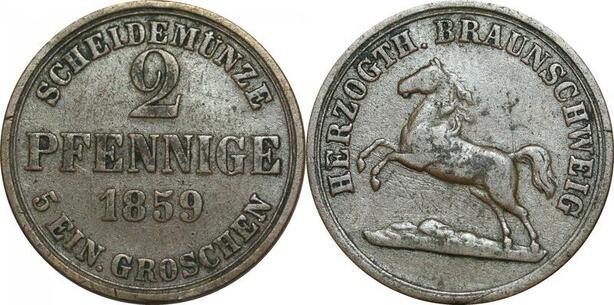 P5906 Germany Brunswick Wolfenbüttel 2 Pfennige Wilhelm 1859 -> M Offer