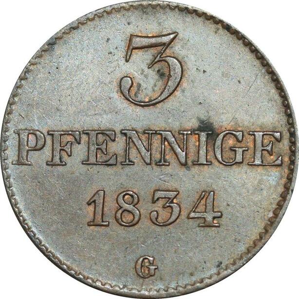 P5910 Germany Saxony Albertine 3 Pfennige Anton I 1834 G -> M Offer