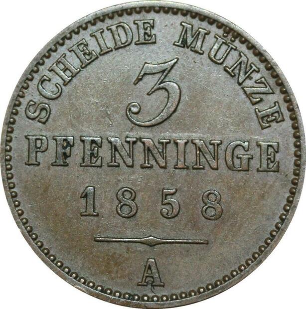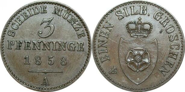 P5928 Germany Lippe Detmold 3 Pfenninge Paul Friedrich Emil Leopold III 1858