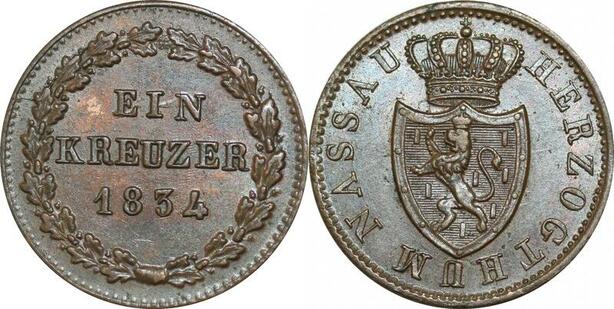 P5929 Germany Nassau Kreuzer Wilhelm 1834 AU -> M Offer