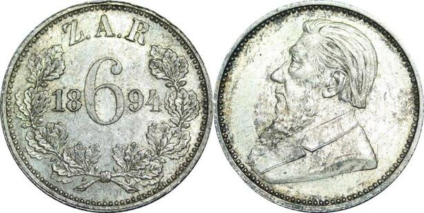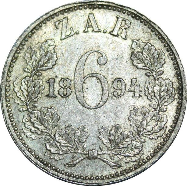 P5936 Very Rare South Africa 6 Pence 1894 Silver UNC -> M Offer