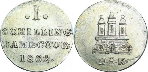 P5937 Germany States Schilling Hambourg 1832 Silver UNC -> M Offer