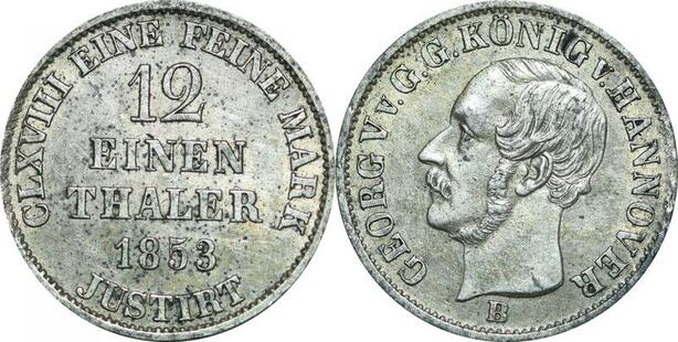 P5951 Braunschweig Calenberg Hannover 1/12 Taler George V 1853 B AU