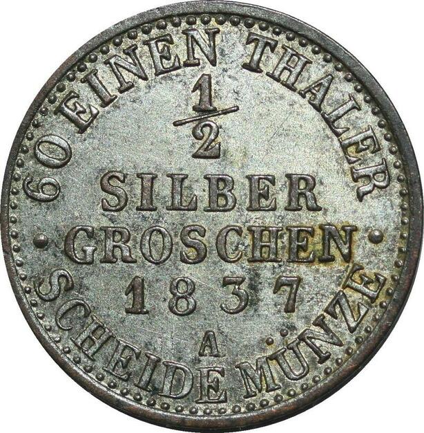 P5958 Germany Prussia 1/2 Silber Groschen Friedrich Wilhelm III 1837 A UNC