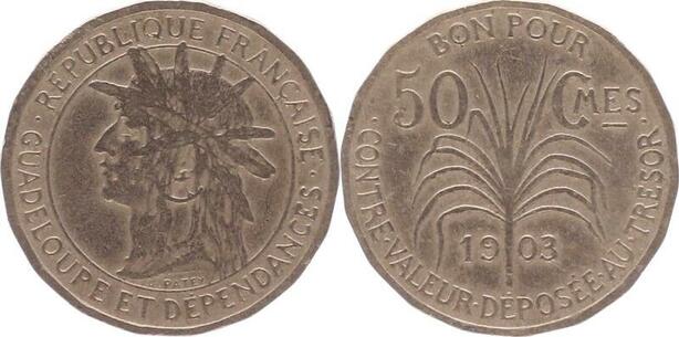 O212 Guadeloupe 50 Centimes Dépendance 1903 -> Make offer