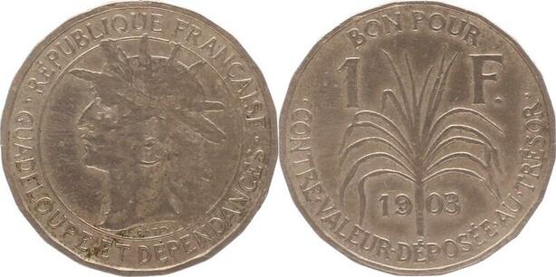 O214 Guadeloupe 1 Franc Dépendance 1903 -> Make offer