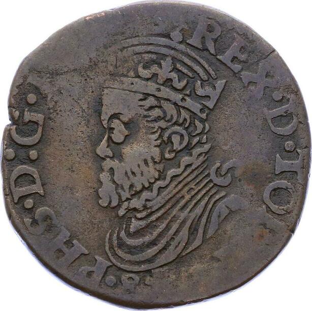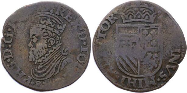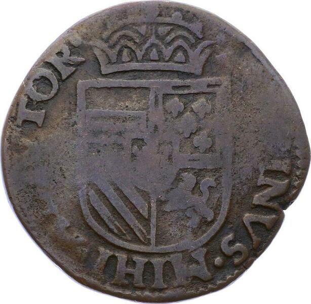 O2217 Rare ! Netherlands Espagnols Philippe II Spain Liard 1582 Tournai