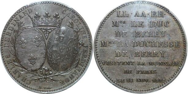 O2296 France 5 Francs Essai Caroline-Ferdinande Duchesse Berry 1817 PCGS SP61