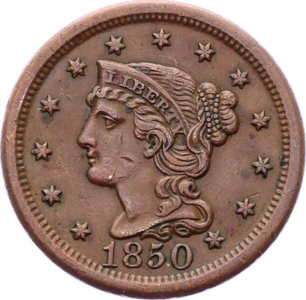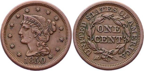 O2441 USA 1 Cent Liberty Head Breaded Hair 1850 AU ->Make offer