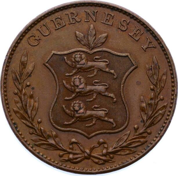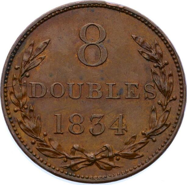 O2610 Very Rare !! Guernsey 8 Doubles 1834 UNC !! ->Make offer