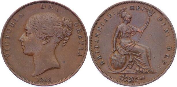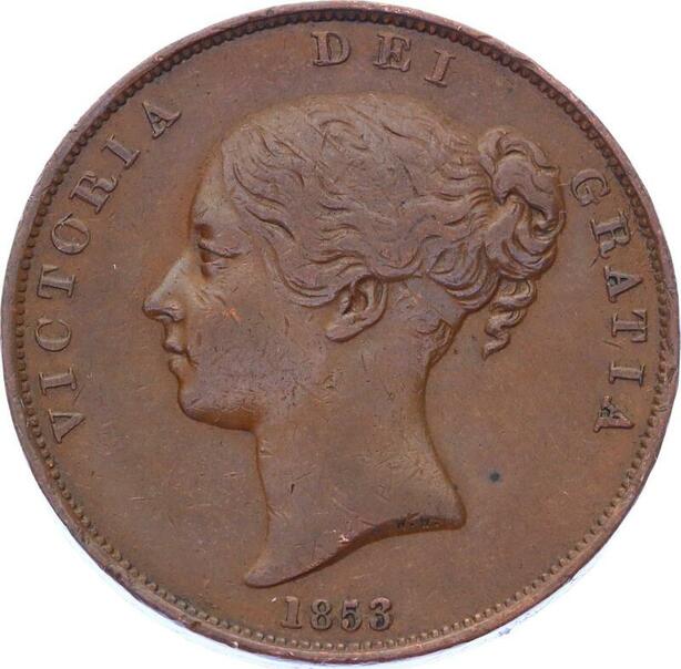O3210 Great Britain Penny Victoria 1853 Ornamental Trident ->Make offer
