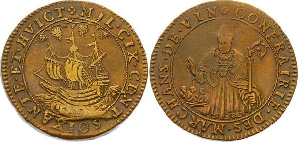 O4002 Rare R2 Jeton Confrairie Marchands Vin Taverniers 1668 ->Make offer