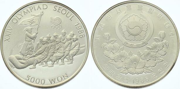 O4320 South Korea 5000 Won 1986 Seoul Olympics 1988 Proof Silver ->Make offer