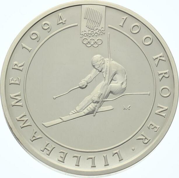 O4331 Norway 100 Kroner Lillehammer Olympics 1994 Proof MS Silver ->Make offer