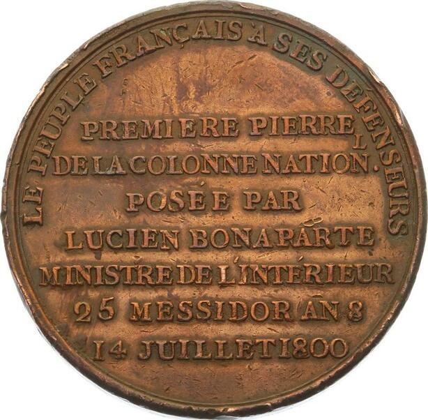 O4387 Medaille Napoléon Ier Colonne nationale Place Vendôme an VIII 1800