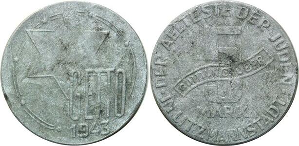 O4621 Poland Fake German Ghetto Getto 5 Mark Lodz Juden 1943