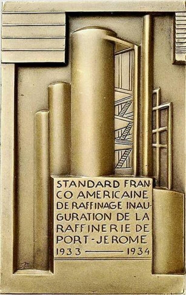 O5047 Very rare Medal ART DECO USA Port-Jérôme Oil Refinery Gustave Miklos