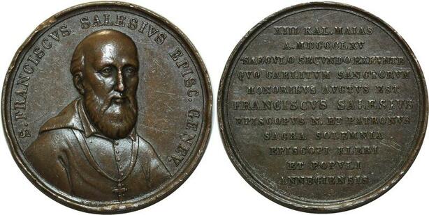 O5071 Scarce Medal Switzerland Geneva Eveque Saint François de Sales 1865