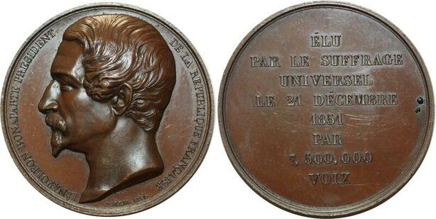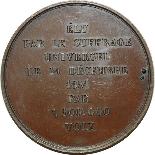 O5081 Rare Medaille Napoleon III Elu suffrage universel 1851 Borrel SPL