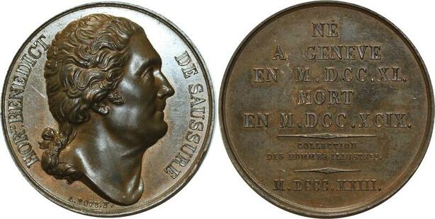 O5210 Rare Medaille Benectic de Saussure Geneve Bovy 1823 Desnoyers SPL