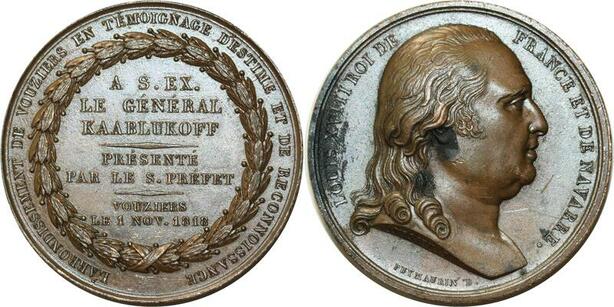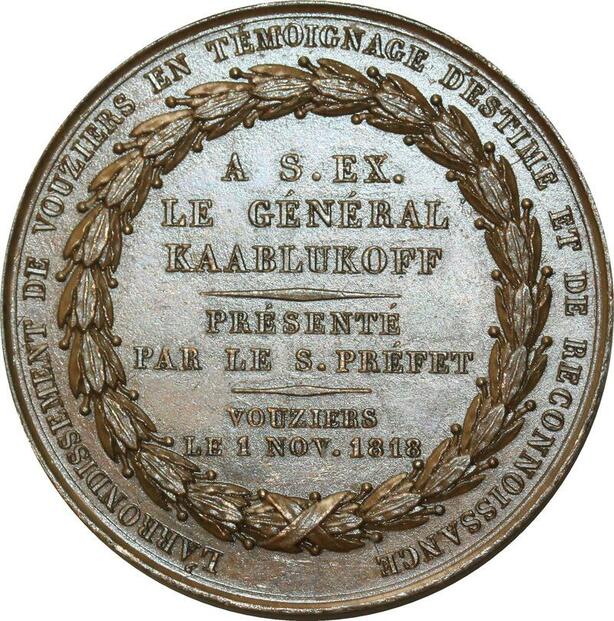 O5220 Rare Medaille Tsar Alexander I 1818 Andrieu Gen. Kaablukoff Desnoyers SUP