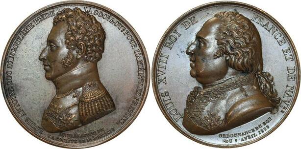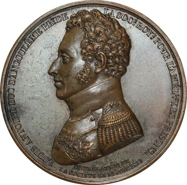 O5260 Rare Medaille Louis XVIII duc Angoulème 1819 Barre Baron Desnoyers SUP+