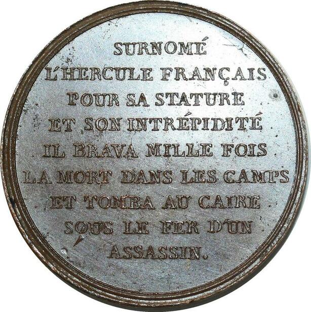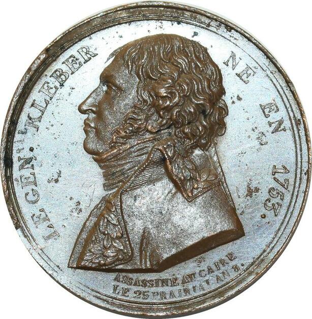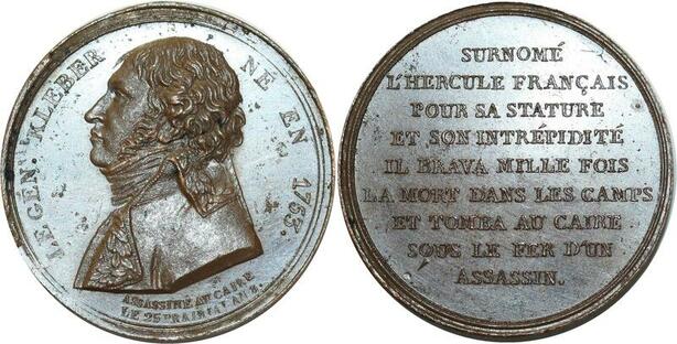O5401 Rare Medaille assassinat général Kléber Caire An 8 1800 Desnoyers SPL