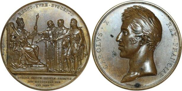 O5513 Rare Medaille Intronisation Charles X Depaulis 1824 Baron Desnoyers SPL