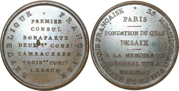 O5613 Rare Medaille Napoleon I Quai desaix Marengo an VIII Baron Desnoyers SPL