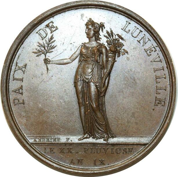O5629 Rare Medaille Napoléon paix Lunéville An IX 1801 Desnoyers PCGS SP63